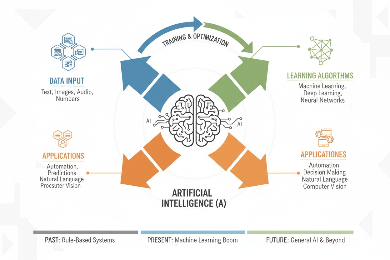 Imagine you have a student who learns by observing patterns and practicing repeatedly. The main goal of artificial intelligence is to build machines that can learn from information, recognize patterns, and improve their performance over time. Instead of programming every tiny detail, AI systems use examples and experience to figure out the best way to complete a task. This approach mimics how humans learn—by trying, making mistakes, and adjusting—except it happens at lightning speed inside a computer.