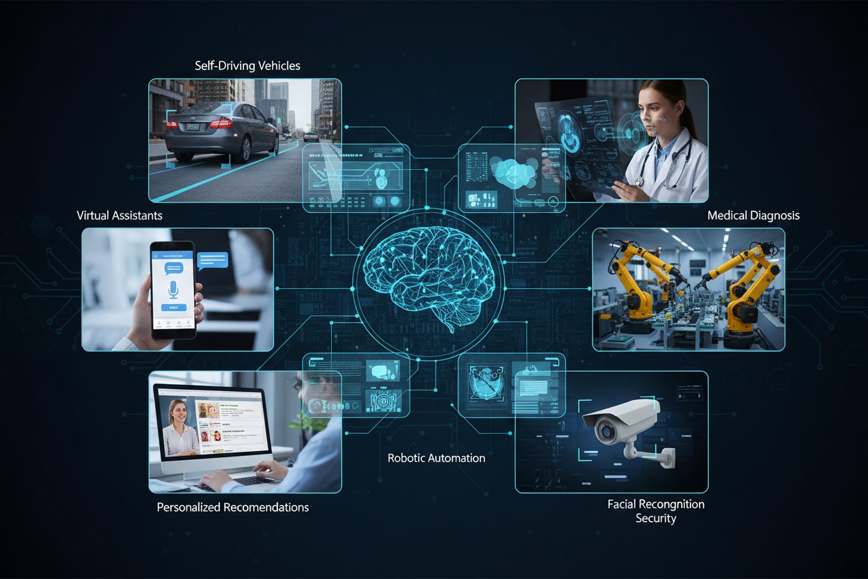 Each example shows how artificial intelligence technologies improve efficiency, accuracy, and convenience in ways you might not even notice.